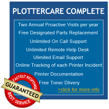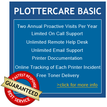 Plotter Assist offers two fixed fee service plans: Lasercare Basic and Lasercare Complete. These are well suited to companies with 3 to approximately 1000 plotters. Rates are based on the number of plotters, usage levels and condition. Our in house training program and other organizational efficiencies, allow us to provide these plans at a lower price than our competitors.